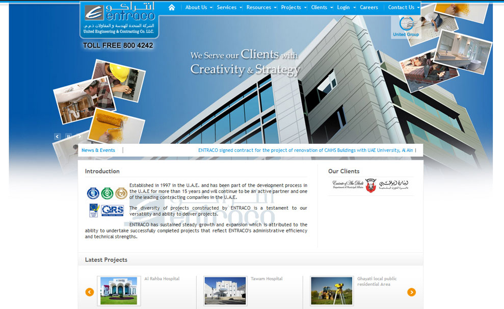 United Group is established in 1997, as one of the rapid growing firm operating with its Headquarters in Al Ain, having branch offices in Abu Dhabi & Western region. The diversity of projects constructed by ENTRACO is a testament to our versatility and ability to deliver projects. These projects range from: