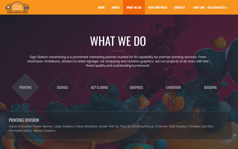 Sign Station Advertising LLC is a full service sign company with over 25 years of experience located in Dubai. Our mission is to provide our customers with unmatched service and the very best sign solutions. We are providing Outdoor Indoor and Graphic Solutions for discerning Groups like Hyper Markets, Interior Decors, FMCG, Power Retailers, Automobiles, Hotels, Hospitals, Event Managers, Advertising Agencies, and Corporate Groups etc. We manufacture all types of signs including Banners, Large Format Digital Printing, Vehicle Wraps and Lettering, Channel Letters, Illuminated Signs, LED Signs, Digital signs, Monument Signs, Trade Show Displays, Window Graphics, ADA Signs, Dimensional Signs and Promotional & Give away Items. We also provide sign consultancy, sign maintenance and sign installation as well as graphic design services.