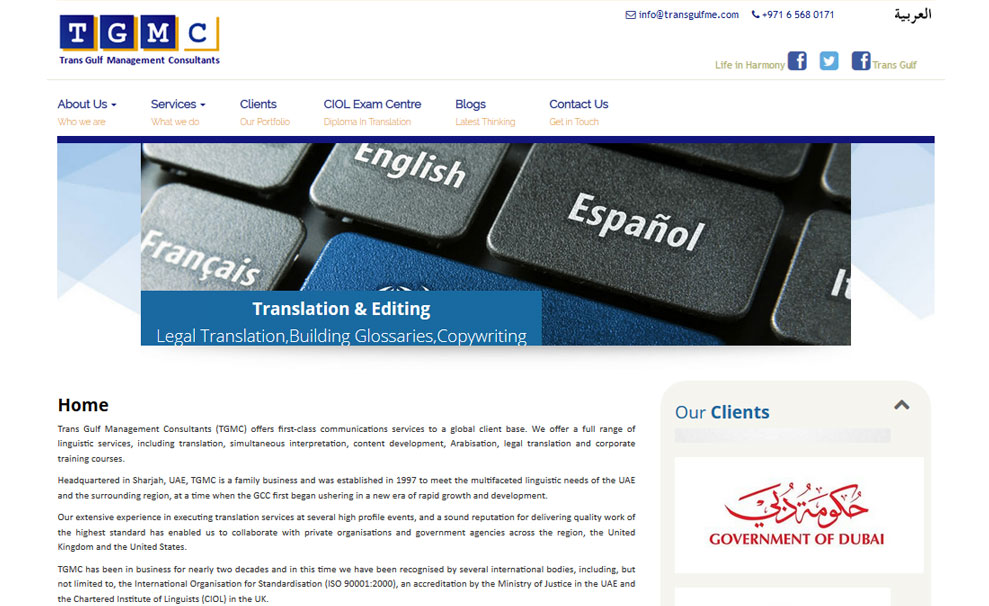 Trans Gulf Management Consultants (TGMC) offers first-class communications services to a global client base. We offer a full range of linguistic services, including translation, simultaneous interpretation, content development, Arabisation, legal translation and corporate training courses.